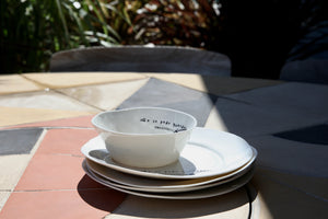 The plates and bowls are so beautiful! I love the irregular shapes, the light off-white colour shade and the quotes - really beautifully made.