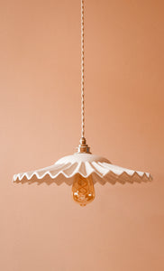 The poetry of our pendant lights lies in their ability to transform light. When lit, the natural translucency of porcelain creates a soft and warm atmosphere. Each model has been designed to offer a unique ambiance, for example, our Viana pendant, inspired by the Art Deco style, casts rays reminiscent of sunlight.